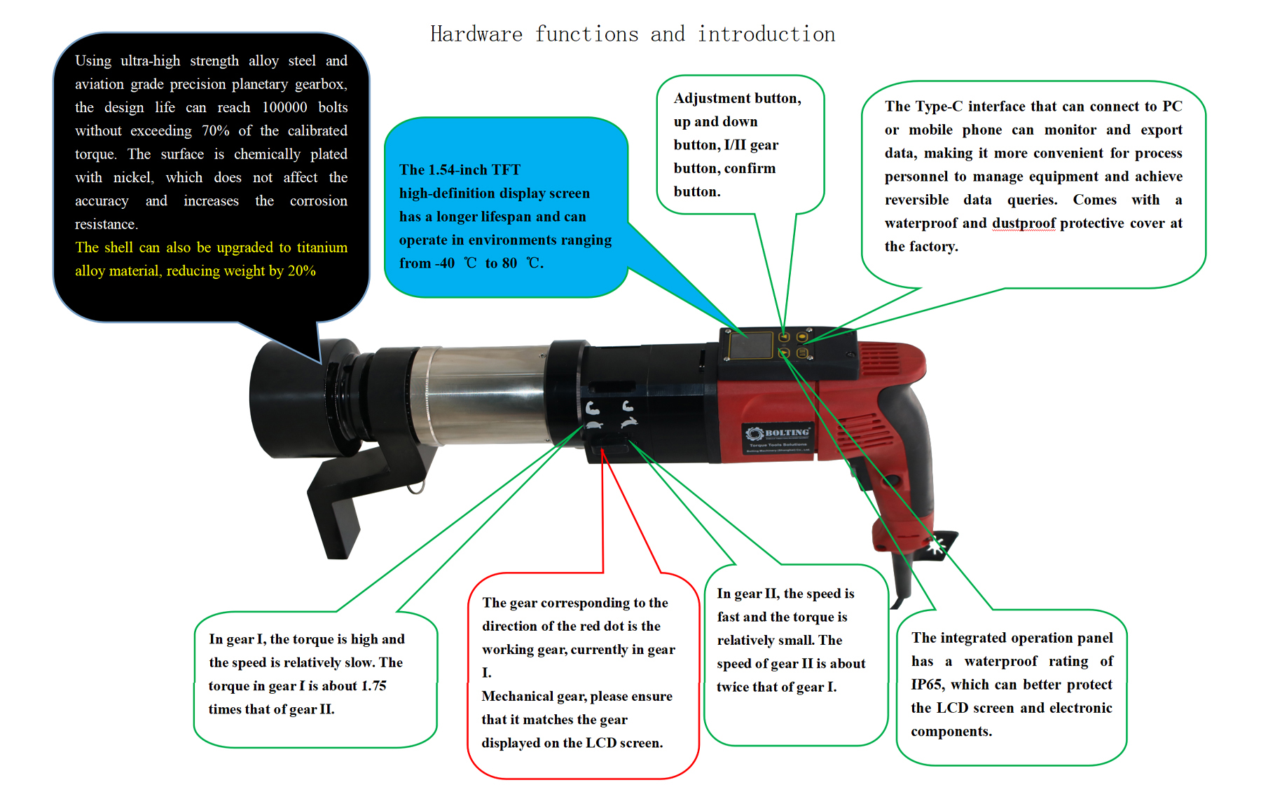 ・The counter calculates the number of times it has been used in real-time, making it clear whether maintenance is needed immediately;Standard configuration: torque, bolt, and gear preset modes;