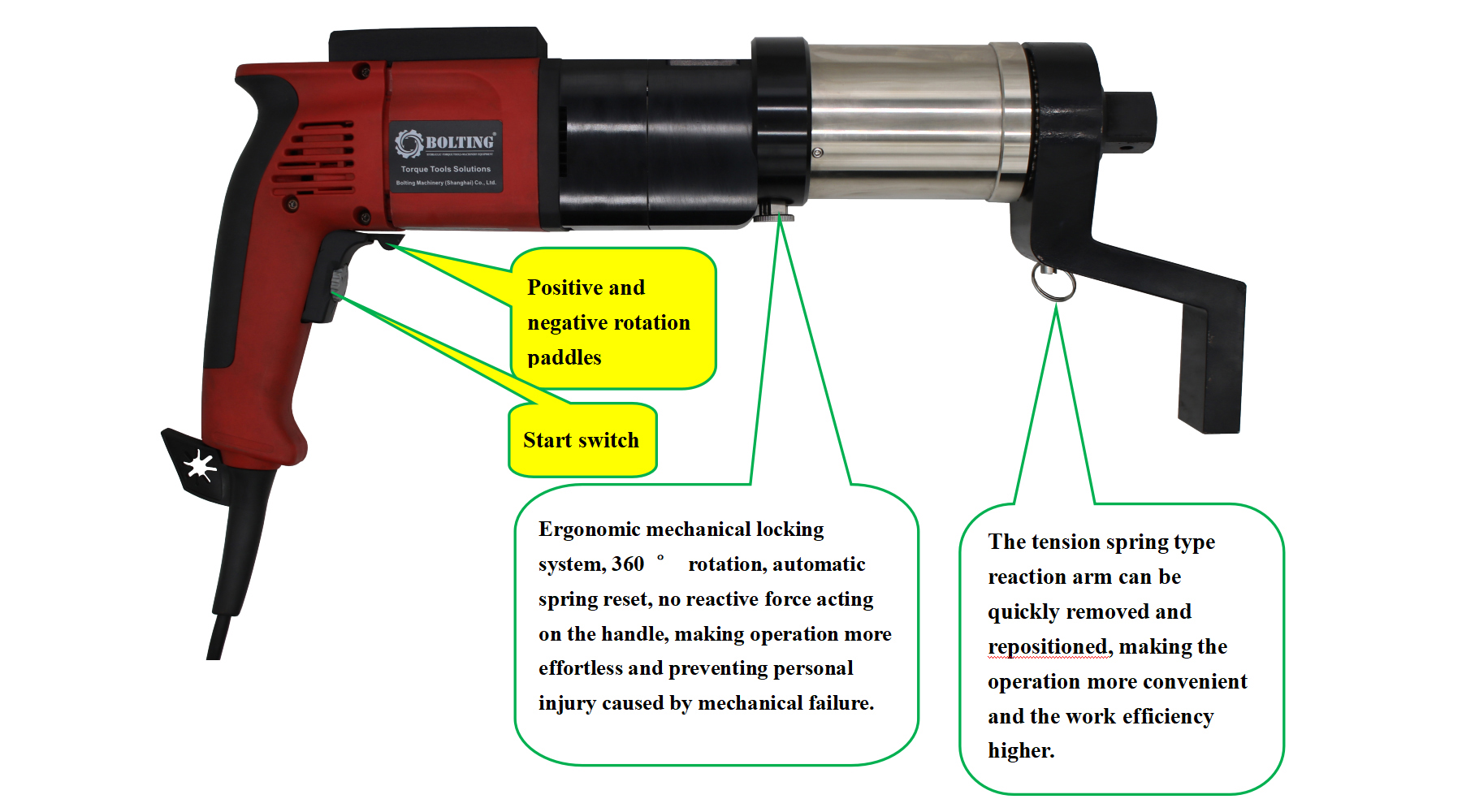 ・Spring type reaction arm can be quickly removed and replaced, improving work efficiency;