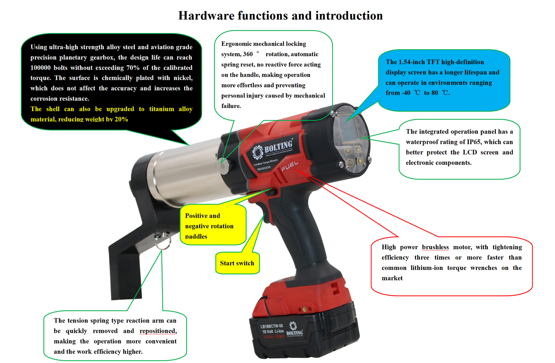 ・The counter calculates the number of times it has been used in real-time, making it clear whether maintenance is needed immediately;Standard configuration: torque, bolt, and gear preset modes;
