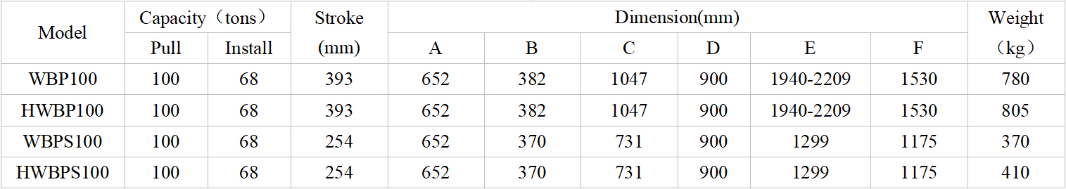 ・The simple, efficient and easy operation provided with pulling force – 100 Ton,Other tonnages can be customized.