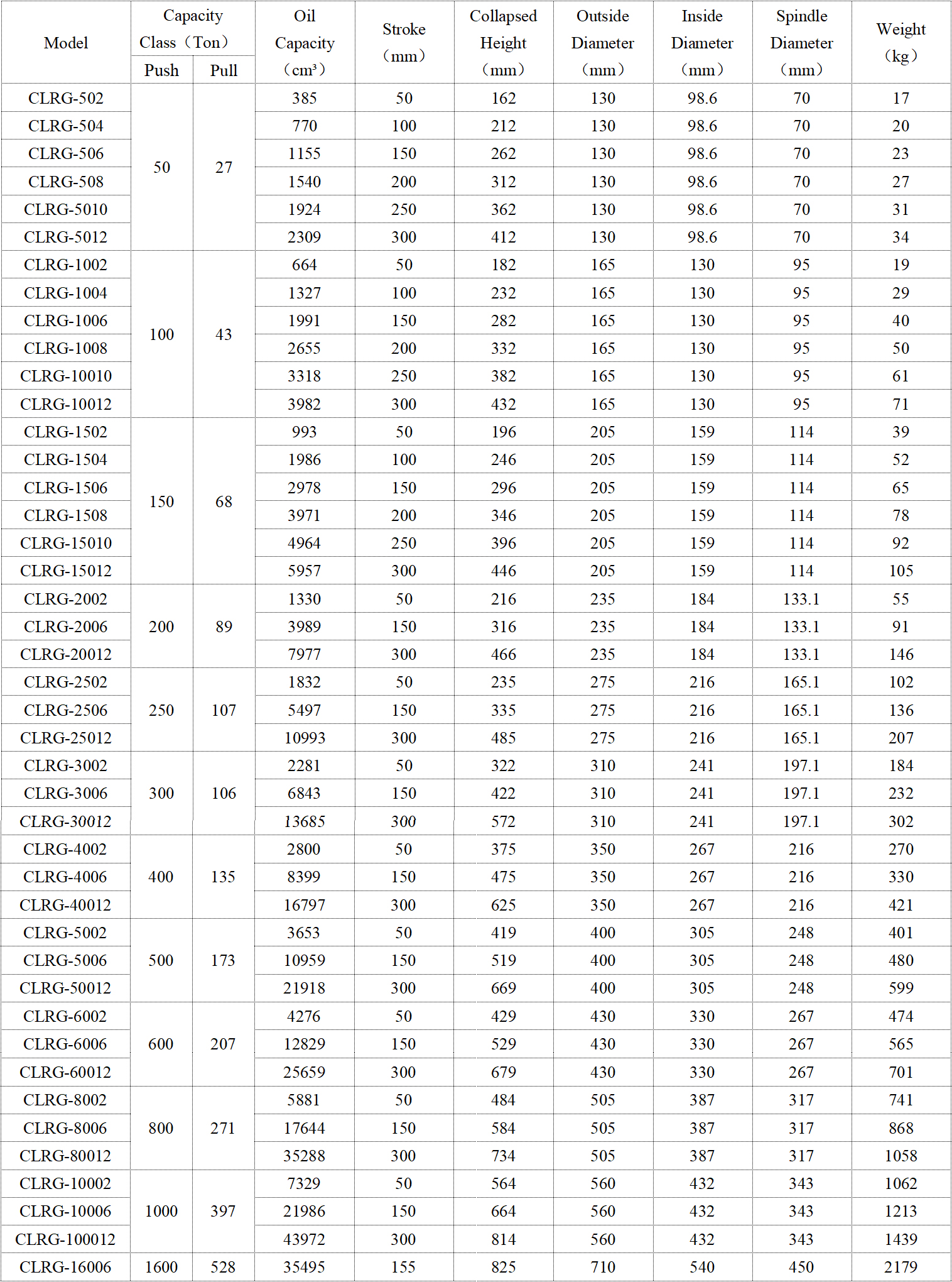 ・Collar threads included on models up to 250 ton. Optional on 300 ton and higher;