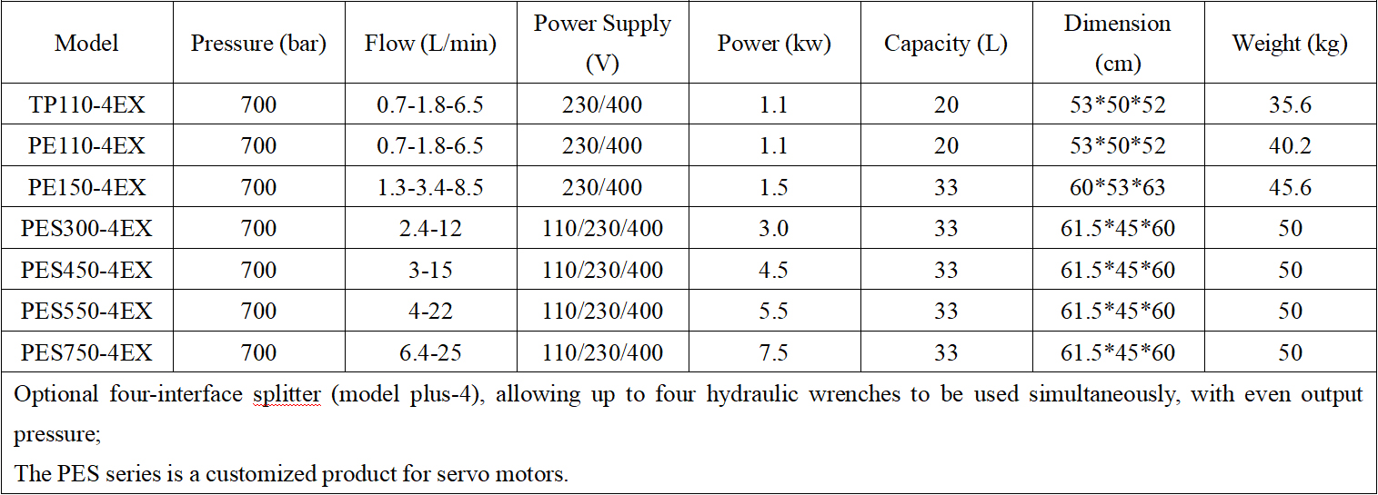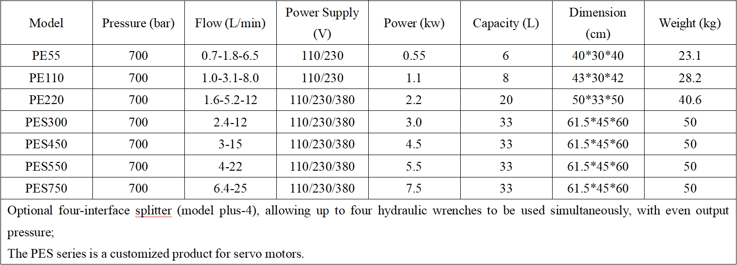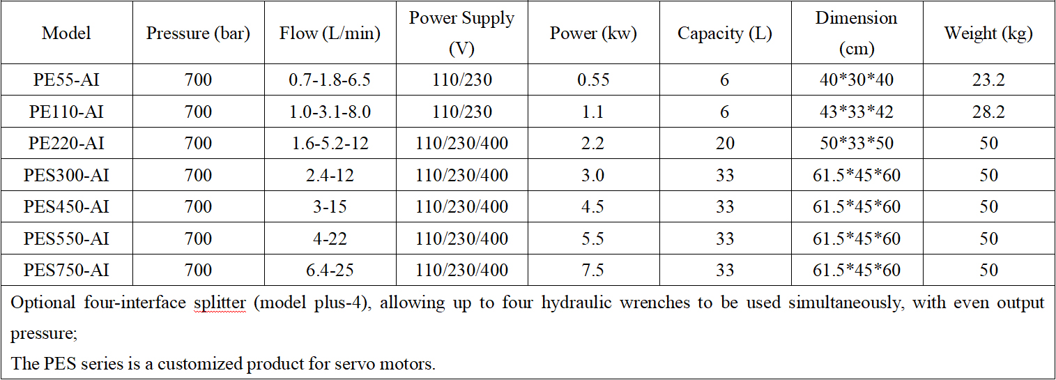 PE55-AI Hydraulic Torque Pump (wireless remote control) PE110-4AI Hydraulic Torque Pump (four-interface)