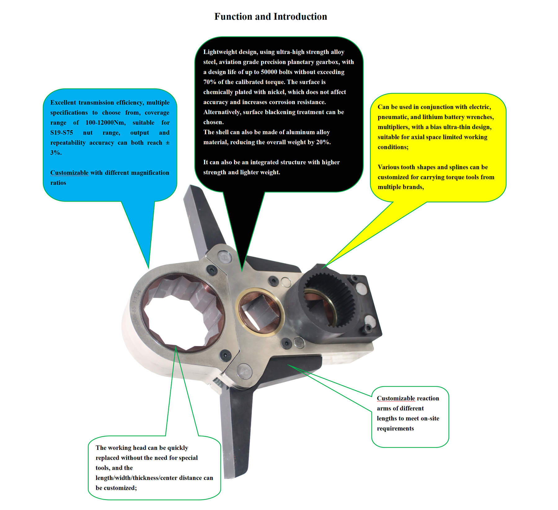 ・Used in conjunction with electric and pneumatic torque wrenches and multipliers, with a bias ultra-thin design, applicable for axial space limited working conditions;